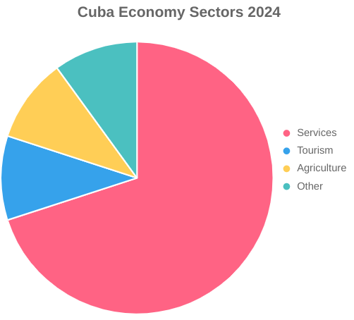 GDP 2024$106 BTotal output, with services (70%) and tourism (10%) leading; down from $107.35 B in 2023 due to blackouts and sanctions. Funds free healthcare but strains food subsidies. Cuba economy 2025: Digital reforms add $1.5 B via private ventures.