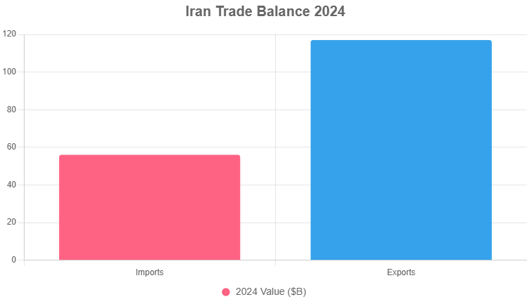 Trade tells the Iran economy’s story. In 2024, exports topped $117 billion, led by oil and petrochemicals (70% share). Key players: crude oil to China and India, iron ore, and ethylene polymers. These bring in hard cash, covering 80% of foreign needs. Non-oil goods like pistachios and carpets add flavor, growing 15% yearly.