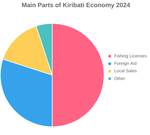 This pie chart shows fishing licenses make up half of all money in the Kiribati economy.