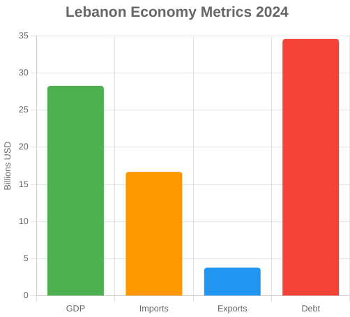 Trade underscores the Lebanon economy‘s fragility, with $3.8 B exports vs $16.7 B imports yielding -$12.9 B deficit in 2023 data, per OEC—2024 similar amid crisis.