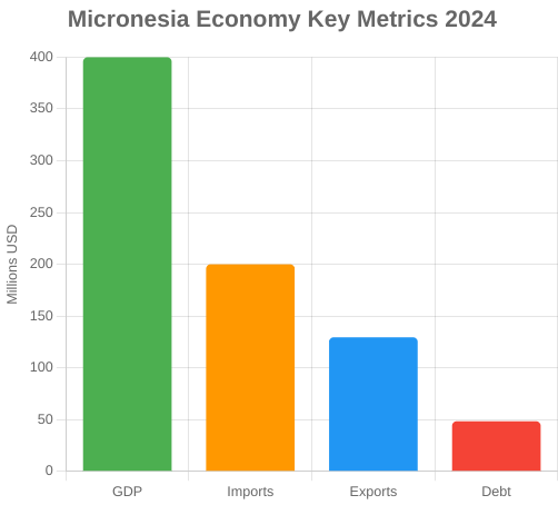 | Debt 2024 | $48.4 M | Just 12% of GDP—very safe. No big loans needed. Micronesia economy use: Borrow $30 M for solar panels and docks. |